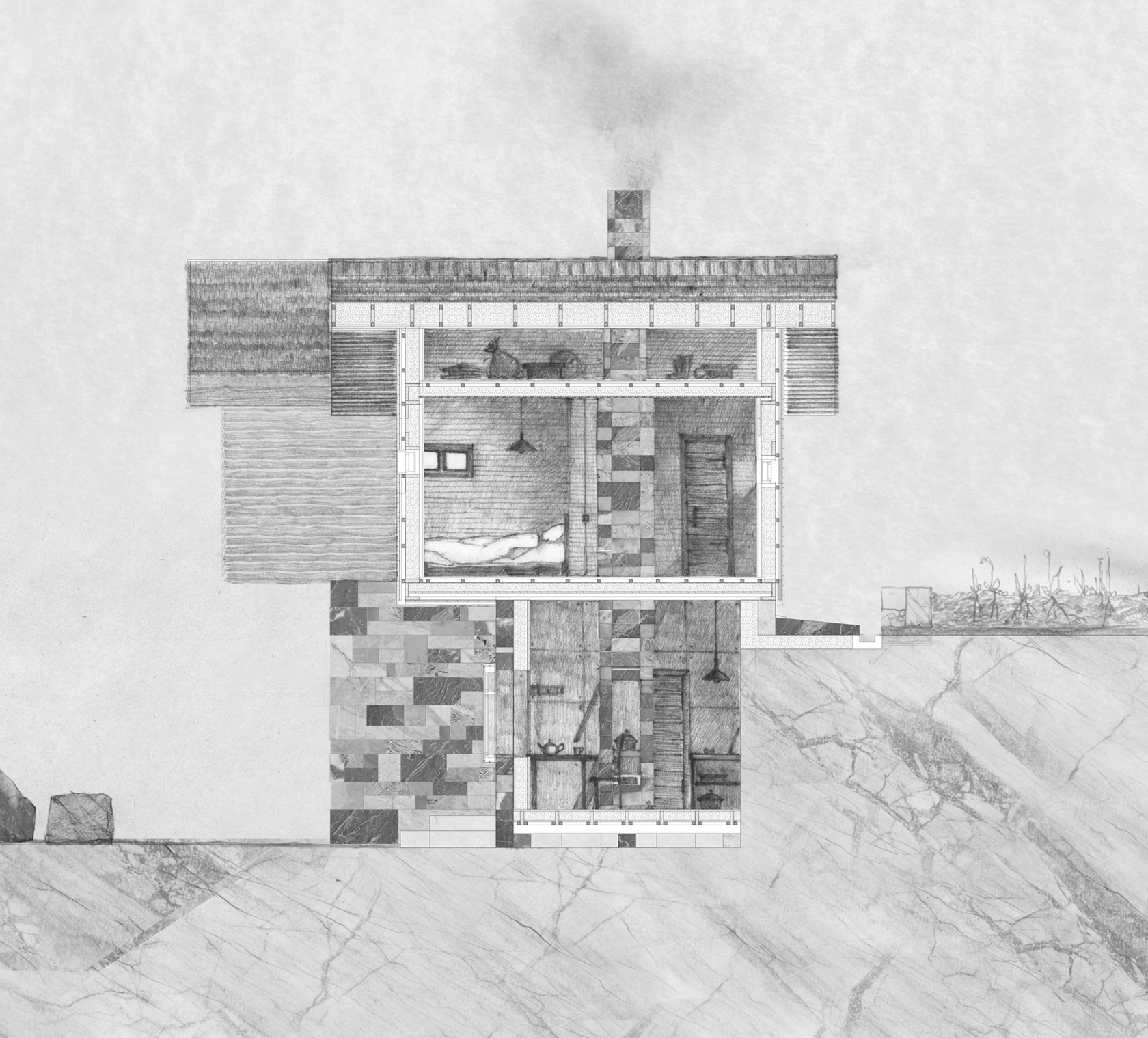 Рядом с карьером находится деревня Петени, которая постепенно пустеет. На пересечении двух контекстов — мраморного карьера и деревянных деревенских домов — появился проект Мраморной деревни: поселения в карьере, которое может вернуть в него жизнь.