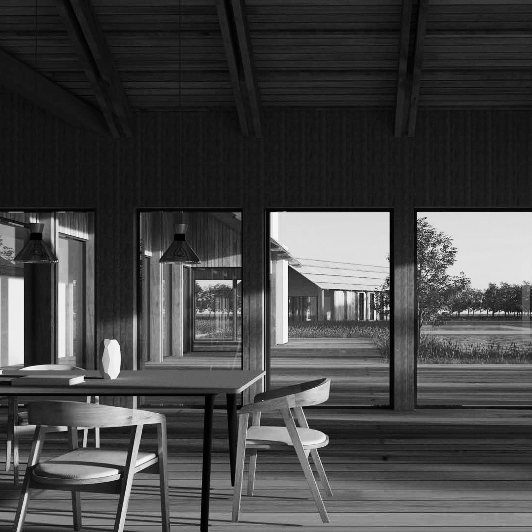Этот ансамбль — не пространство кратковременного пребывания, как большинство проектов студии, а придорожная резиденция. В ней есть отель, индивидуальные жилые домики, мастерские, ресторан, лодочная станция ― и закусочная с магазином для тех, кто не собирается задерживаться.