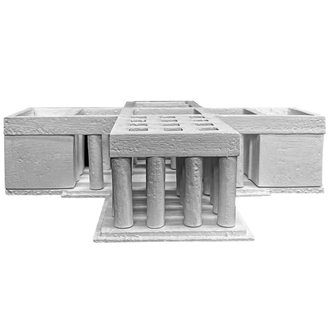 Как и другие объекты студии, храм индексирует информацию об участке, состоит из повторяющихся юнитов, а также имеет вход и выход по осям, ведущим к объекту и от него.