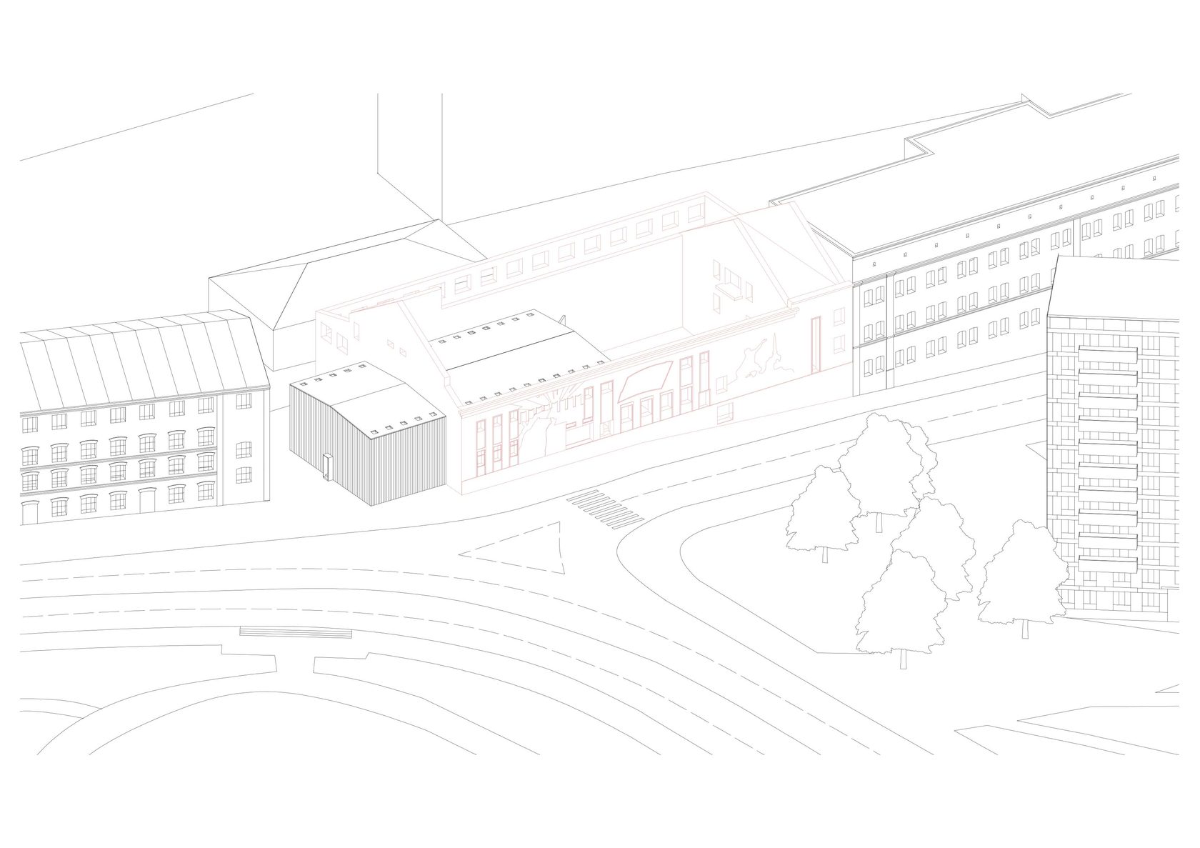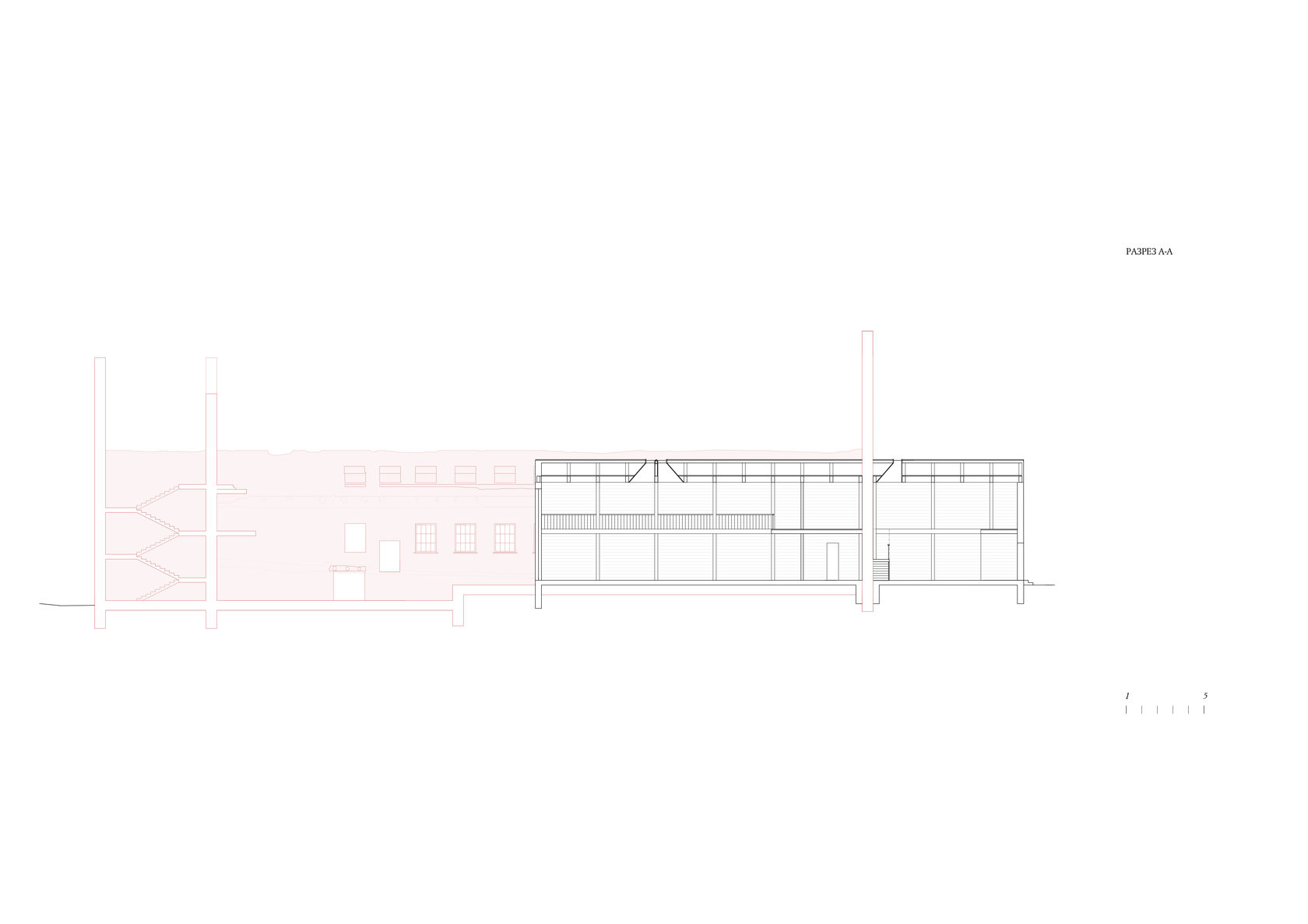 Внутрь сохранившейся кирпичной оболочки Арина встроила деревянную конструкцию театра, обыграв на контрасте двух материалов соприкосновение временного с вечным. Пристройка тактично проникает в старое здание, оставляя главную роль за руиной, которая становится постоянной декорацией трёх новых театральных пространств.