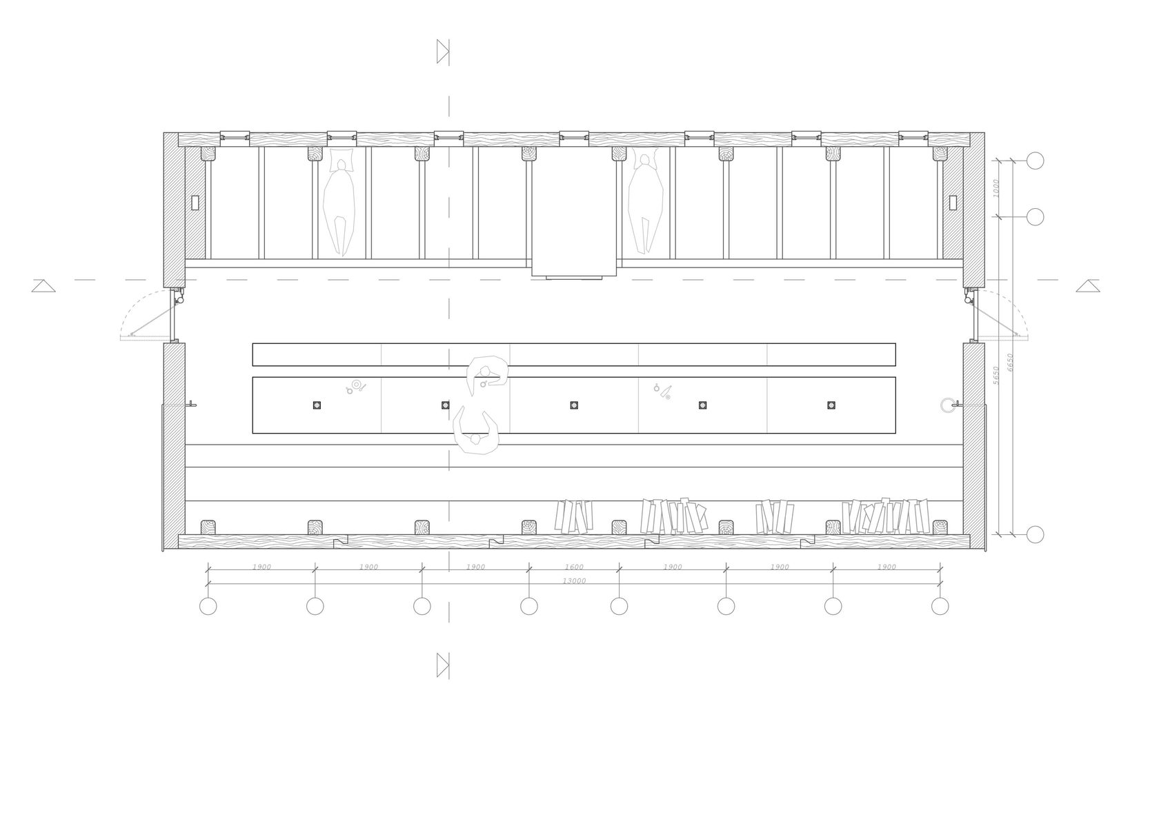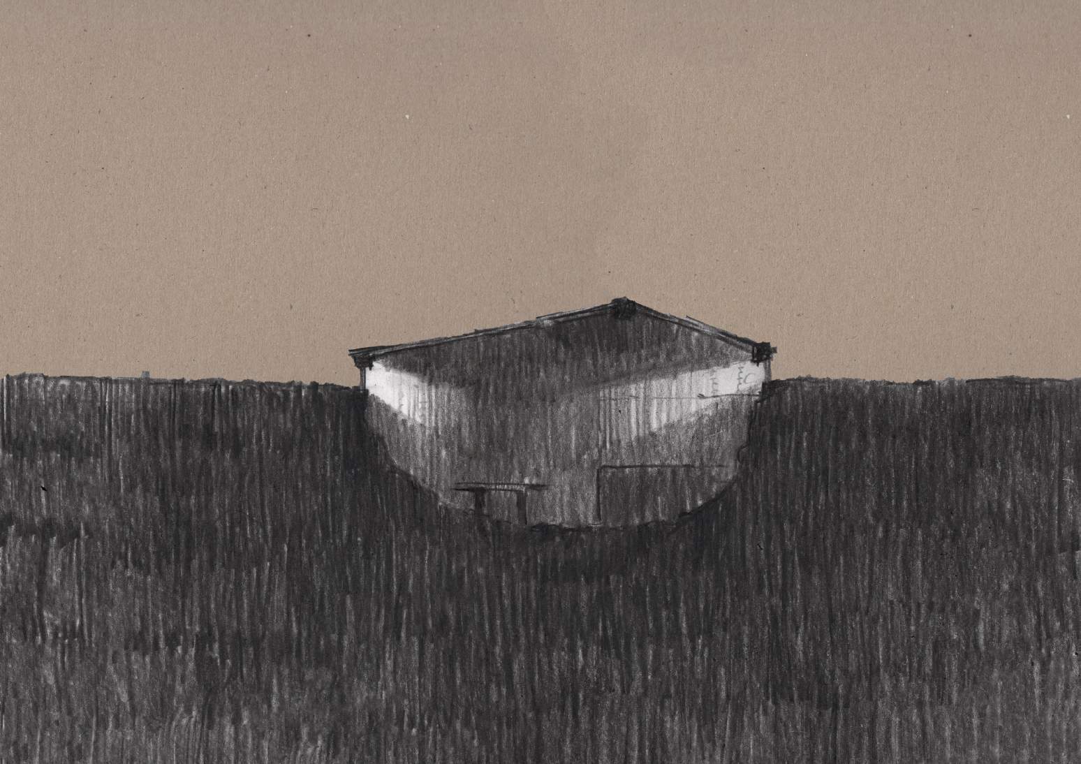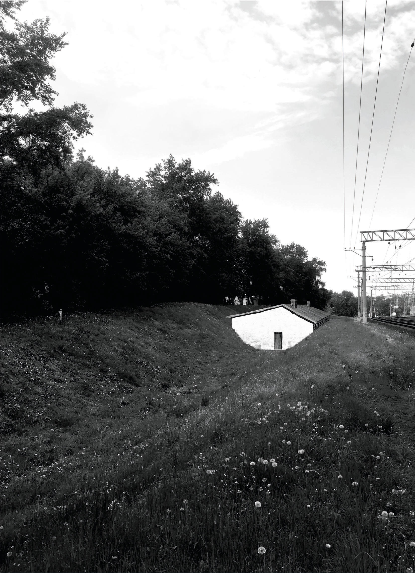 Вытянутая вдоль железнодорожных путей 30-метровая в длину хижина встаёт на пролегающий по оврагу путь. Она выстроена вокруг дровяной печи с двумя дымоходами, которая обогревает помещение и размещает дюжину спальных мест. Под тёсовой двускатной кровлей ― белёные кирпичные торцевые стены и бревенчатые продольные. В небольшую дверь на торцевой глухом фасаде входят исключённые из социума люди, находят в хижине отдохновение ― на полатях и за большим столом ― и через такую же дверь в противоположной стороне выходят, продолжая свой путь.