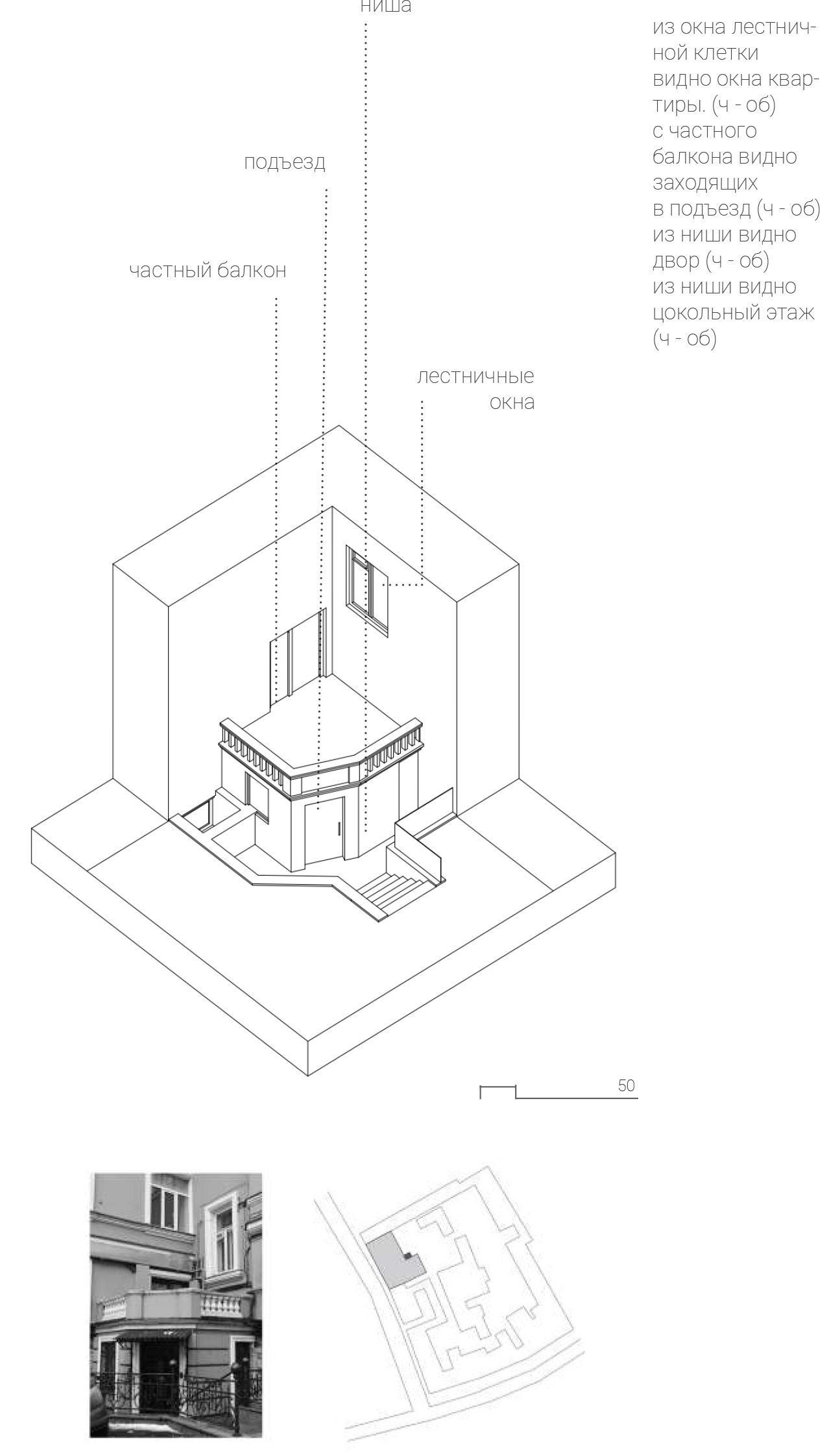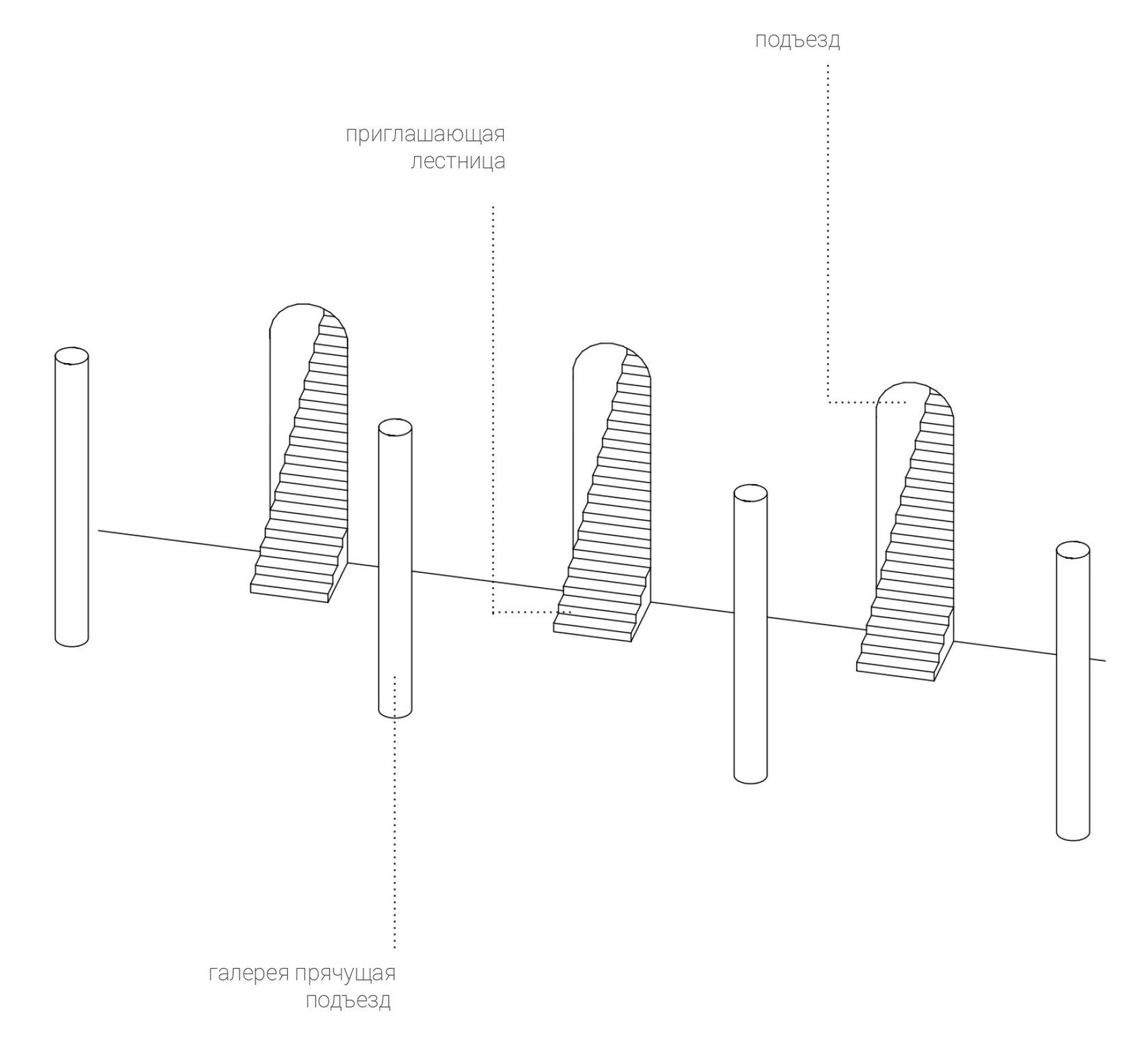 Для Александры «важным местом» в городе стала входная группа здания на Чистопрудном бульваре, соединившая в себе элементы разной степени приватности: двор, подъезд, окна лестничной клетки, террасу частной квартиры. Этот организационный принцип стал основой проекта жилого дома, в котором все квартиры нанизаны на каркас из общих пространств.